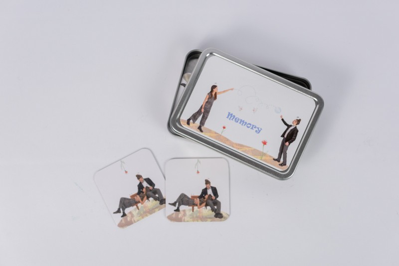 Il Memory Fotografico è un’idea regalo realizzata con le vostre immagini, 24 coppie di tessere in cartoncino resistente e stondato, confezionate all’interno di un’elegante scatola in latta personalizzata.