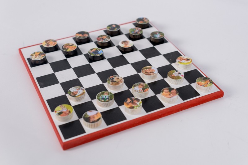 Il gioco, al quale prendono parte due giocatori, si svolge su una damiera formata da 64 caselle: 32 bianche e 32 scure. Per realizzare il gioco occorrono 24 immagini.
